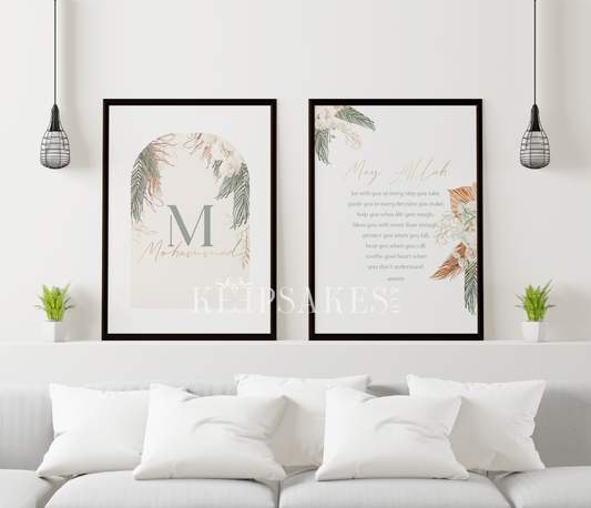 PERSONALISED - Palm Leaves Duo | Islamic Nursery Decor | Boys Decor