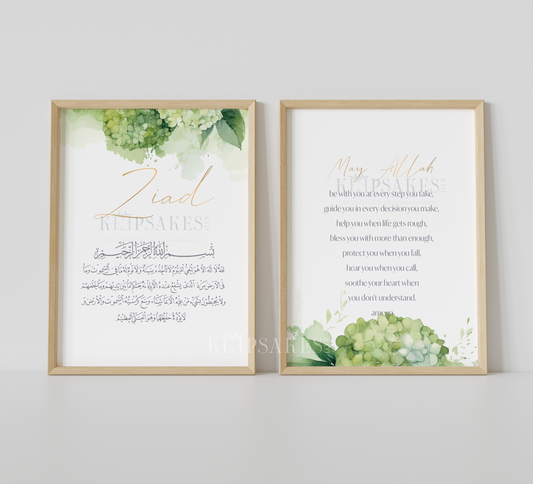 PERSONALISED - Green Hydrangea Duo | Islamic Nursery Decor | Boys Decor