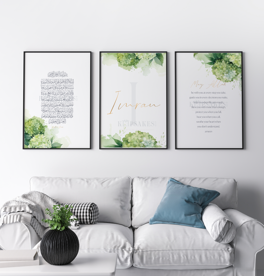 PERSONALISED - Green Hydrangea Trio | Islamic Nursery Decor | Boys Decor