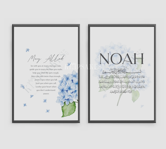 PERSONALISED - Blue Hydrangea Duo | Islamic Nursery Decor | Boys Decor
