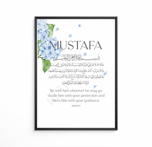 PERSONALISED - Blue Hydrangea | Islamic Nursery Decor | Boys Decor