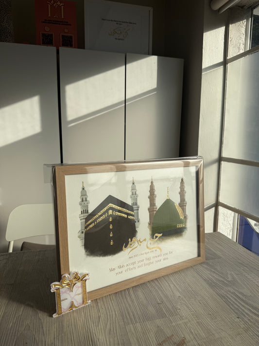 Personalised Hajj Mabroor gift | Kabah & Masjid Nabawi
