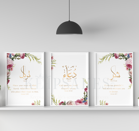 Shukr, Tawakkul, Dua - Pink Floral Trio